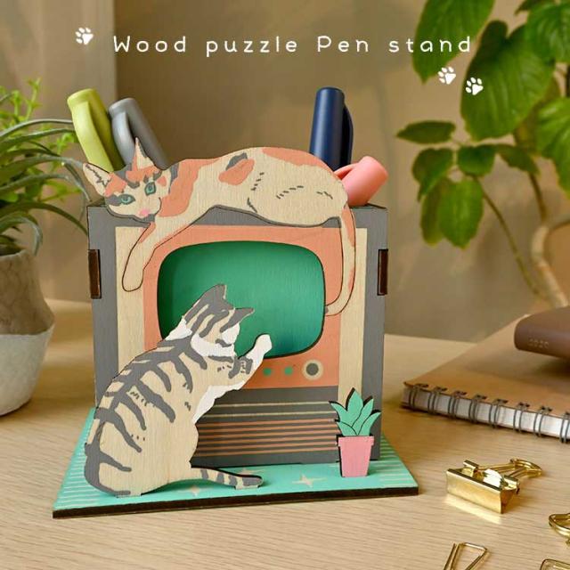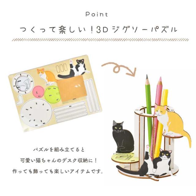 ペンスタンド 猫 木製 大容量 ねこ ネコ グッズ 雑貨 ペン立て パズル ジグソーパズル 文具 文房具 写真立て 小物入れ ウッドパズル 猫好き プレゼント ギフト かわいい 可愛い カワイイ お洒落 おしゃれ レディース 女性 女の子 女子 組み立て オフィス 社会人 デスク 収納
