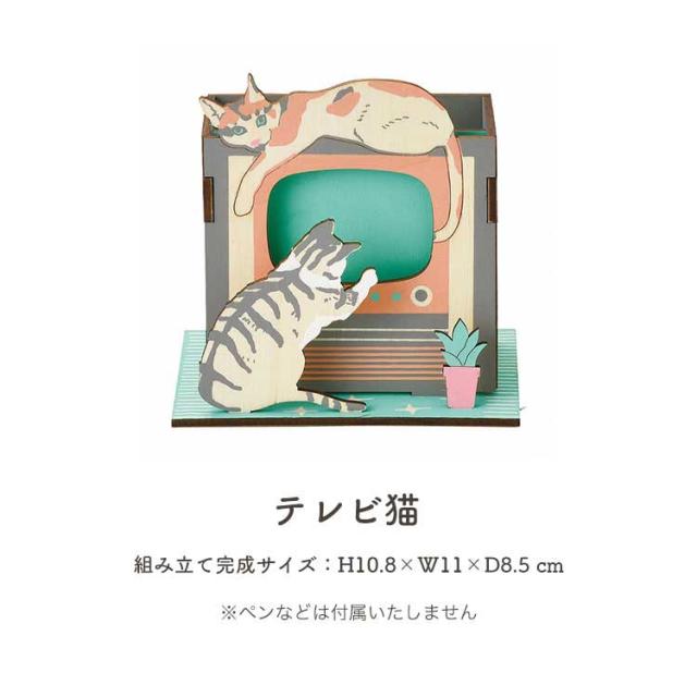 木製パズルを組み立てると猫ちゃんのデスク収納に変身! 組み立て楽しい、飾って可愛いパズルシリーズが登場。 猫好きさんへのプレゼントにもオススメです♪