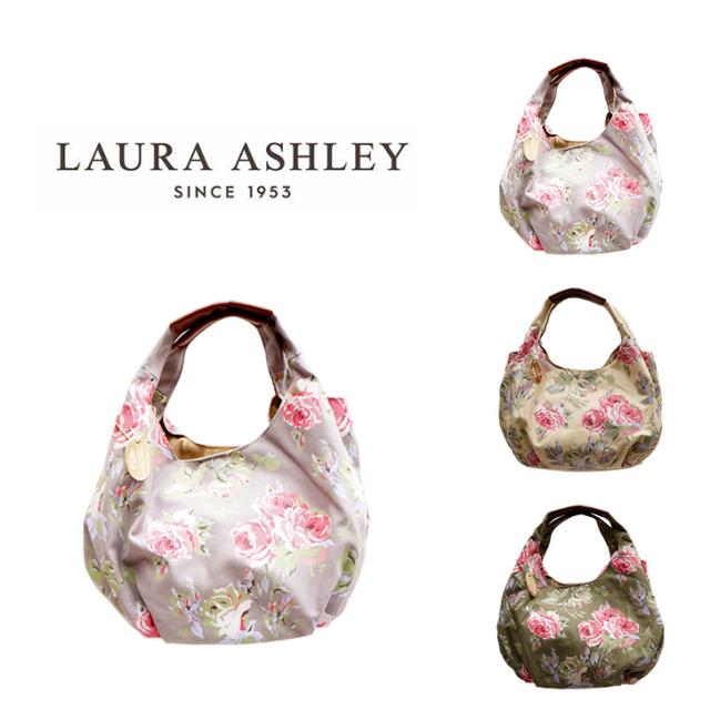 LAURA ASHLEY ローラアシュレイ ILHK-01 ナチュラル キャンバス 大人可愛い 花柄バッグ トート ハンドバッグ 手持ち ひじ掛け ファスナーポケット オープンポケット グリーン ベージュ グレー ROSE 丸型トート A4サイズ 収納 8L 通勤 お出かけ