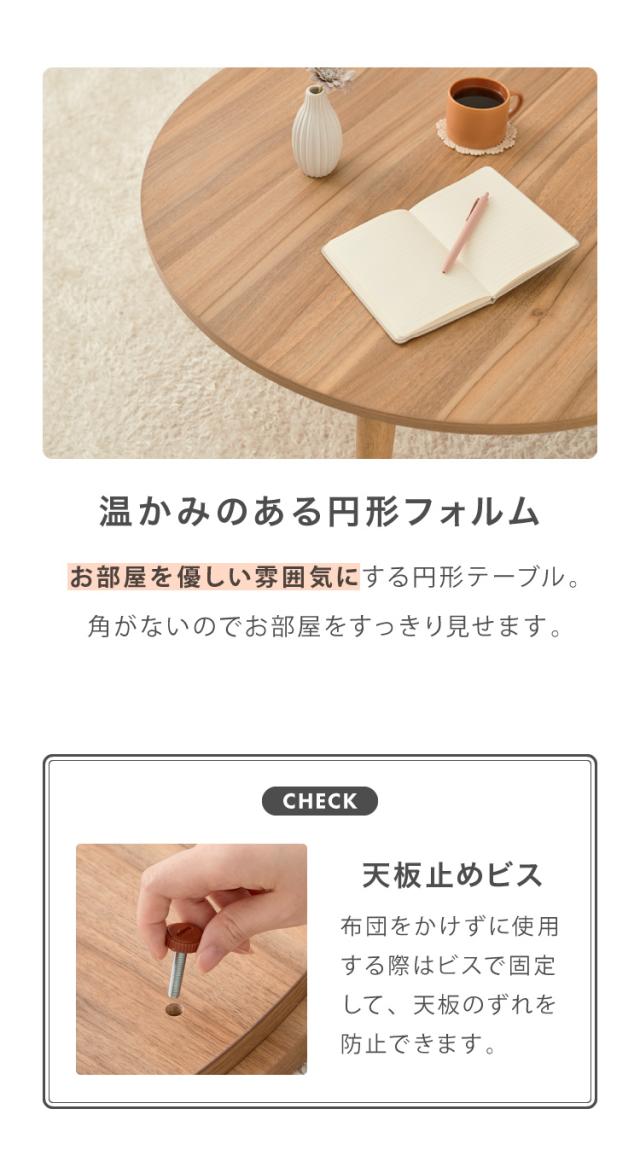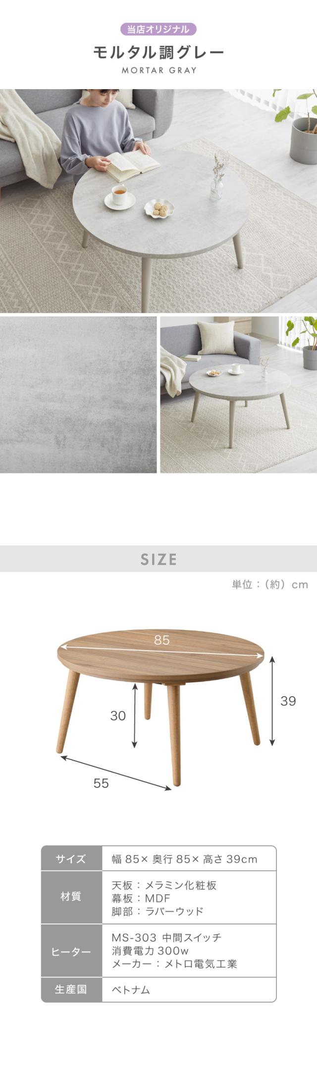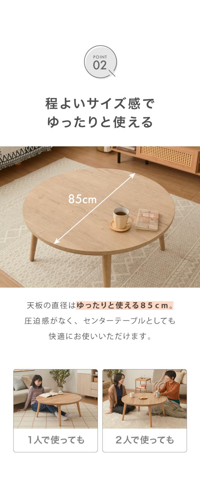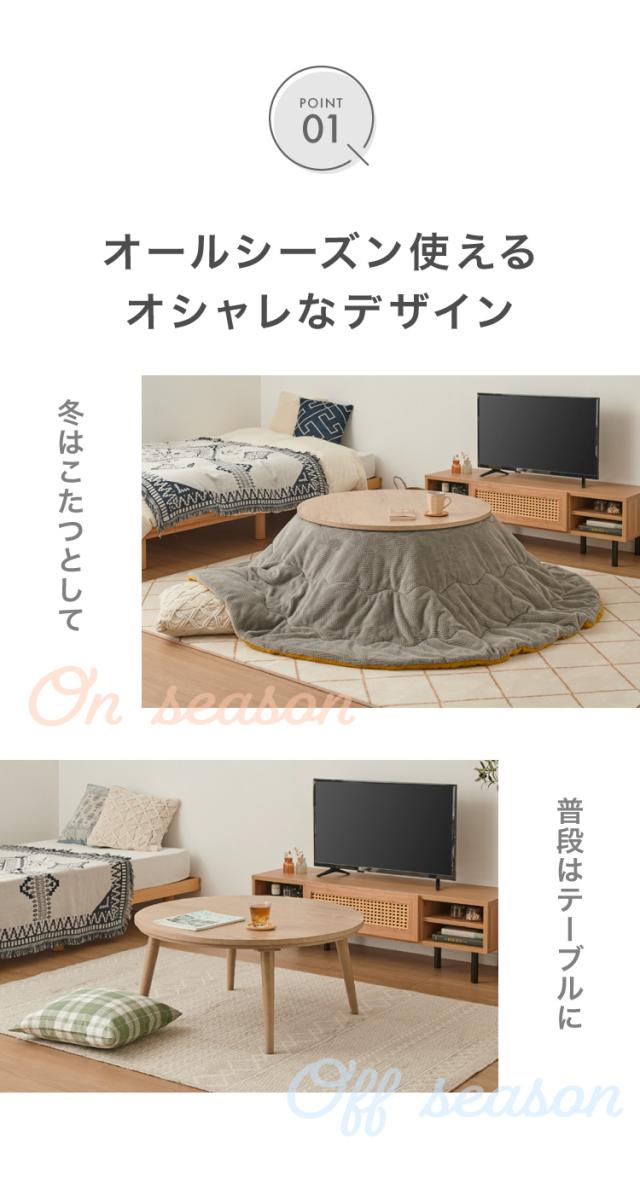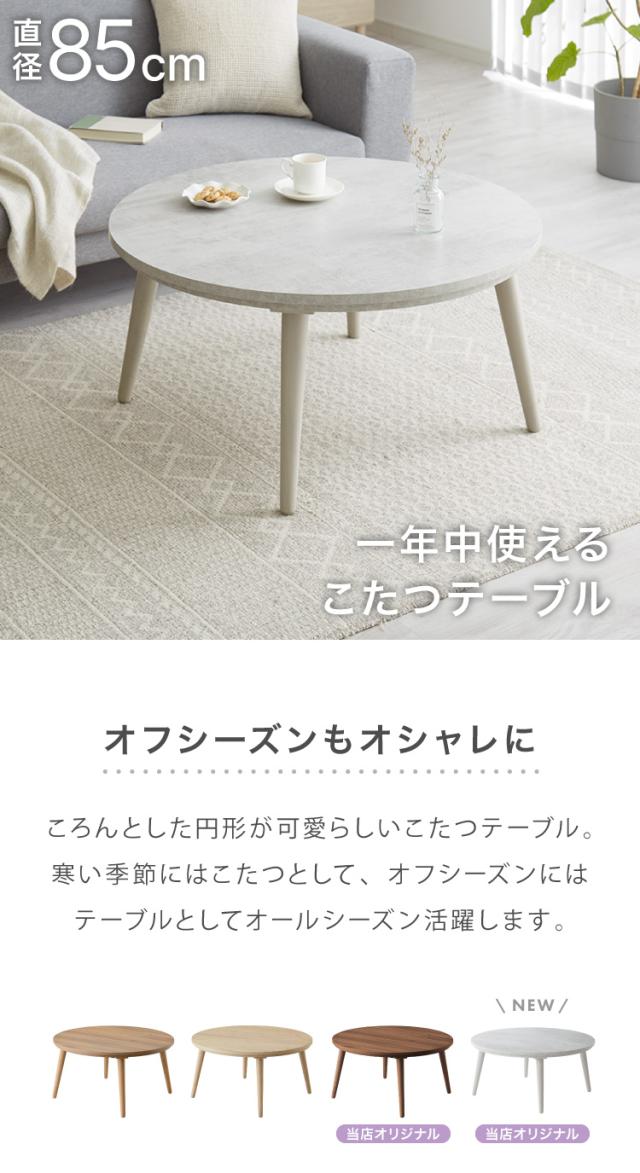 円形こたつ 幅85cm 丸型 木目調 天然木脚 ラバーウッド 工具不要 ねじ込み式 おしゃれ シンプル 一人暮らし 新生活 テーブル オールシーズン 北欧 かわいい シンプル(代引不可)【送料無料】