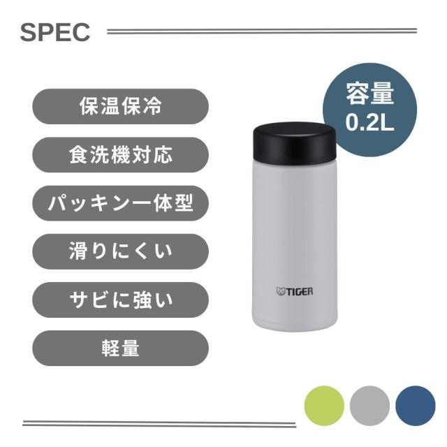 タイガー水筒スポーツドリンク対応スクリュー200ml保冷保温軽量食洗器対応パッキン一体型無重力ボトルMMP-W020らくらくキャップ