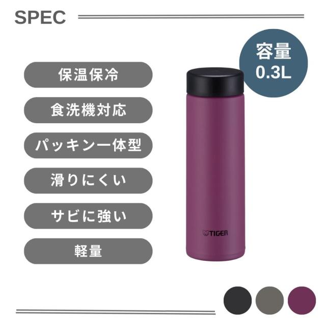 タイガー水筒スポーツドリンク対応スクリュー300ml保冷保温軽量食洗器対応パッキン一体型無重力ボトルMMP-W030らくらくキャップ