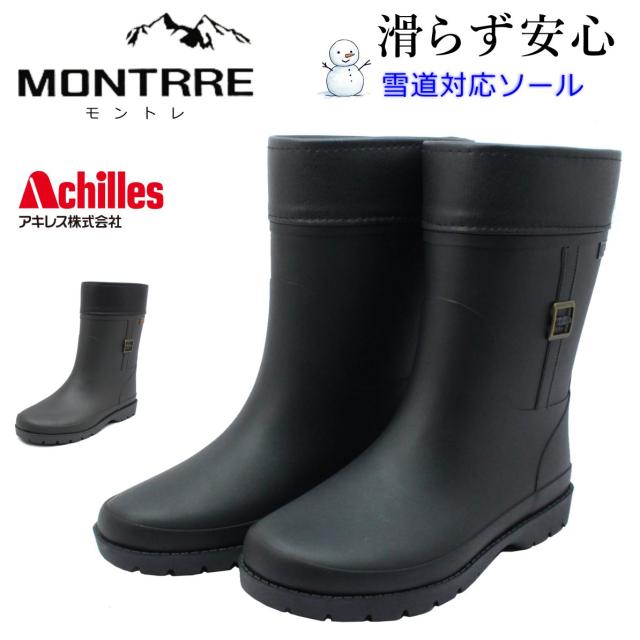 アキレス Achilles レディース 長靴 モントレ MONTRRE レインブーツ 防寒 防滑 防水 ハーフ丈 FBW 1700 FB-170 婦人靴 クロ ダークブラウン