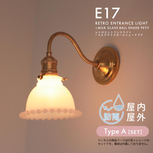 【セット】レトロエントランスライト+ミルクグラスボールシェード プチ