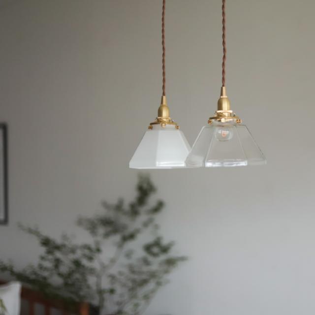 ガラスの三角シェードは昼間消灯している時も、