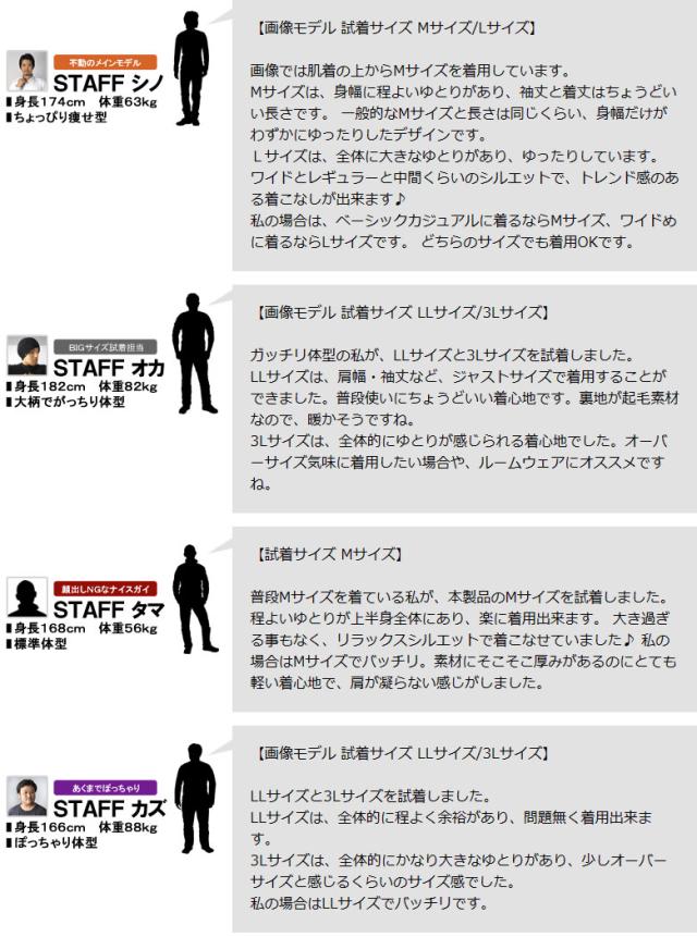 ■上記掲載画像のモデルは身長174cm・体重63kgでMサイズを着用しております。