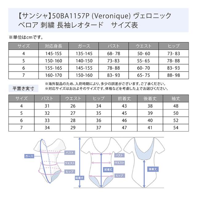 【サンシャ】50BA1158V (Agate) アガット ベロア 刺繍 6分袖レオタード