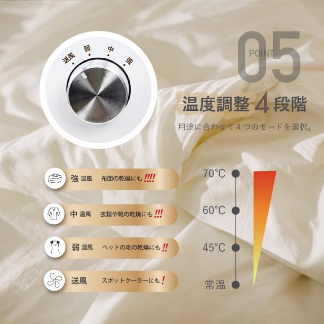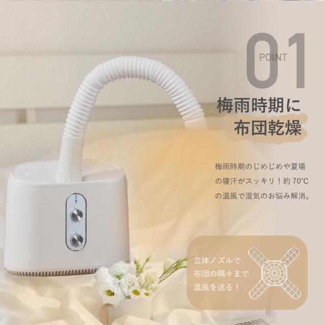 ★梅雨時期のじめじめや夏場の寝汗がスッキリ!約70℃の温風で布団の湿気のお悩みを解消。立体ノズルで布団の隅々まで温風を送ります。