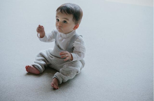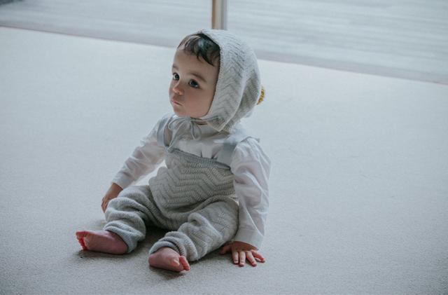 肩ストラップは成長に合わせて2段階に調整可能。70~80cm前後のねんね期からハイハイ期まで重宝するサイズ感です。足を出せるスタイルで、歩き始めたベビーも安心して履けます。