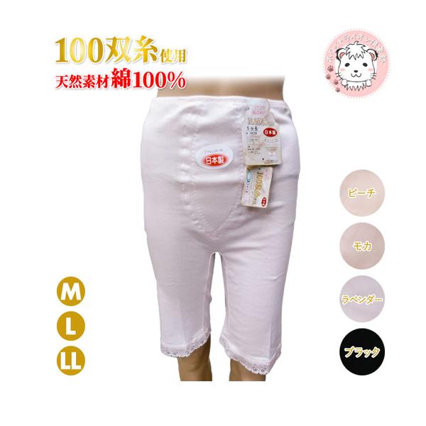 素肌に安心とやさしさの思いやり肌着。100双糸シリーズの5分長ボトムです。天然素材の綿100%!シルクのような触り心地で上品な光沢のあるコットンです。安心の日本製製品。