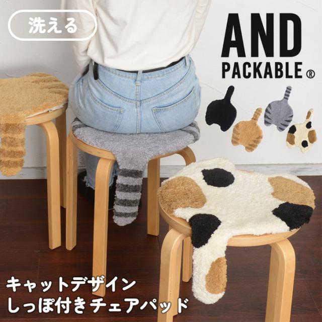 新作 AND PACKABLE アンドパッカブル チェアパッド クッション キャットデザイン しっぽ付き 椅子 イス チェアクッション 座布団 猫 ネコ ねこ グッズ かわいい おしゃれ インテリア シートクッション