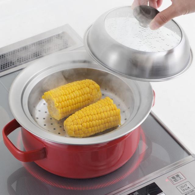 耐蝕性、耐久性に優れた18-8ステンレス製です。汚れやサビに強く、においも移りにくいので衛生的。竹のせいろのようにカビる心配もありません。