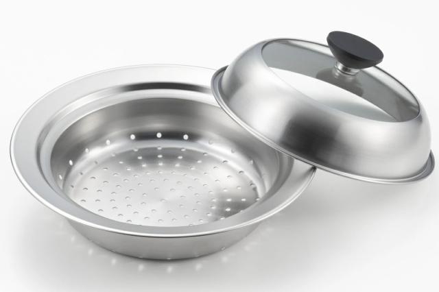 お手持ちのフライパンにのせるだけで、蒸し料理が作れるステンレス製の蒸しプレートです。大きな専用蒸し器をわざわざ準備しなくても、手軽に蒸し料理が作れます。プレートと蓋のみなので、簡単に洗うことができ、かさばらず収納できるのもうれしいポイントです。