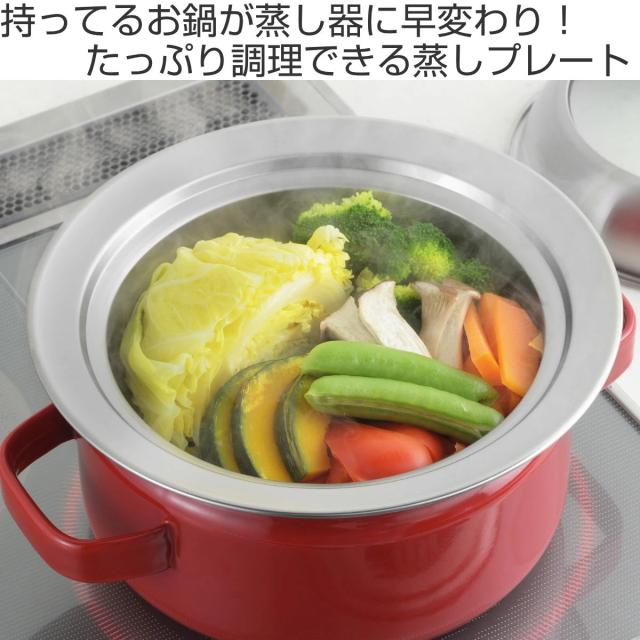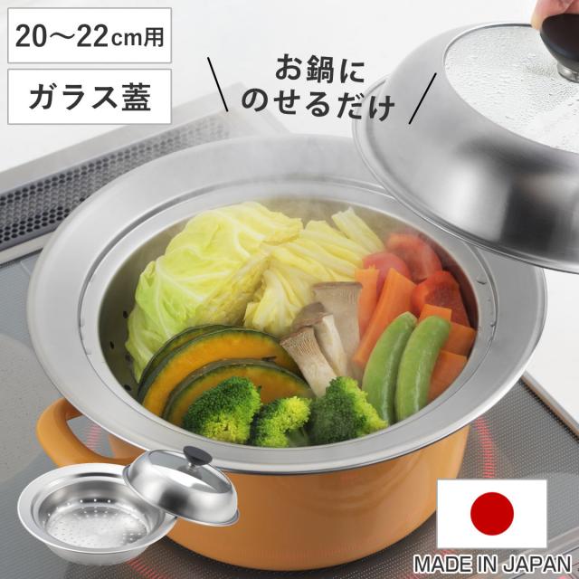 お鍋用蒸し器 18〜20cm用 ガラス蓋付き 日本製 ( 蒸し器 ステンレス 蒸しプレート ドーム型 蓋付き 蒸し皿 スチームプレート 蒸し料理 温野菜 蒸し野菜 のせるだけ )