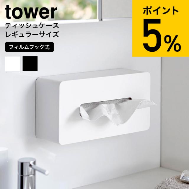 tower 山崎実業 フィルムフックティッシュケース タワー レギュラーサイズ 5587 5588 ホワイト ブラック ティッシュカバー ティッシュボックス 洗面所 キッチン 浮かせる収納 タワーシリーズ yamazaki