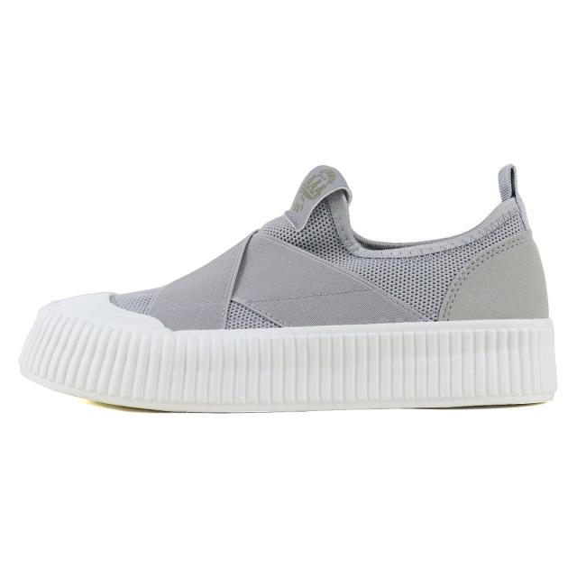 クロスバンドが特徴的な厚底スリッポン