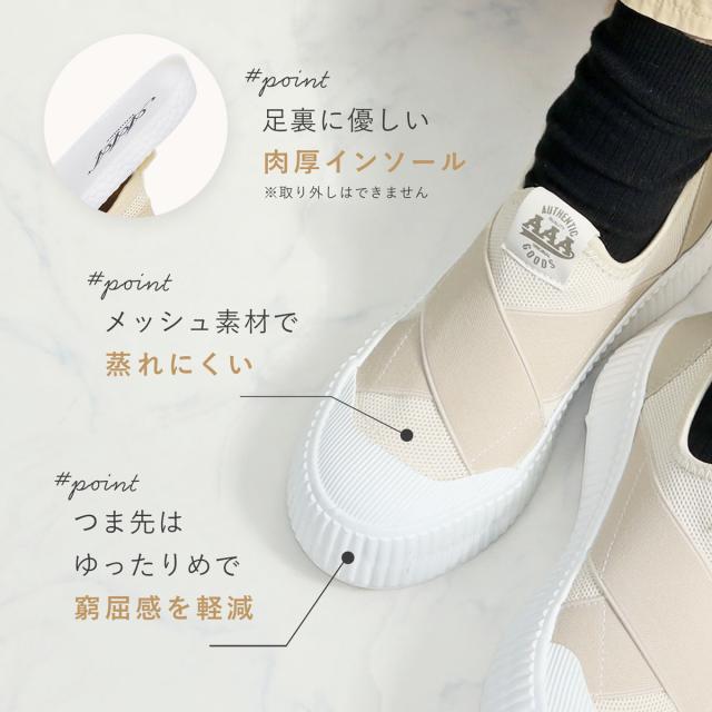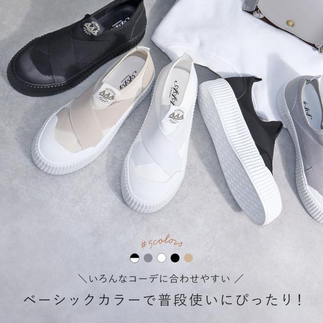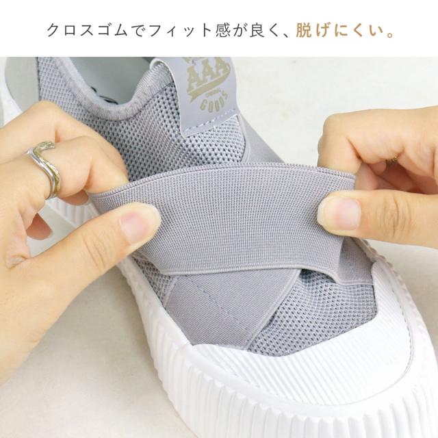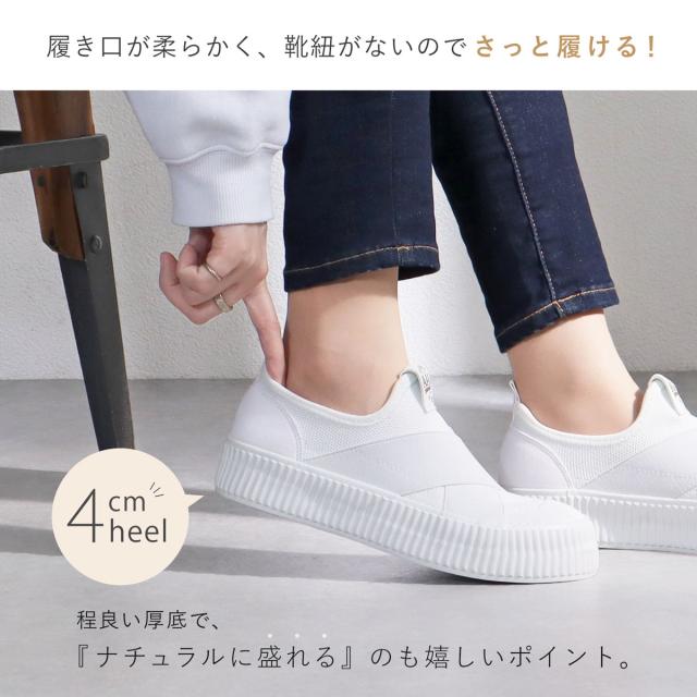 スニーカー レディース スリッポン クロスゴム クロスバンド 厚底 4cmヒール 歩きやすい ブラック ホワイト No.3403 22.5-25.5cm AAA+ Feminine サンエープラスフェミニン