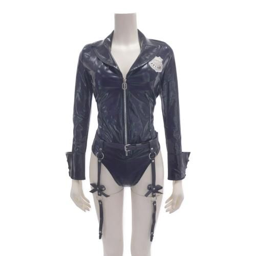 【グラシア】 コスプレ 衣装 コスチューム 仮装 セクシー キュート コス 婦人警官 アメリカンポリス エナメル タイト リボン 光沢 ブラック フリーサイズ