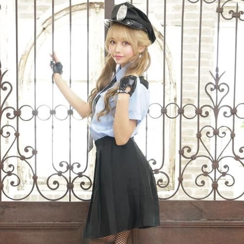 【グラシア】 コスプレ 衣装 コスチューム 仮装 セクシー キュート コス 婦人警官 アメリカンポリス ブラック×ライトブルー フリーサイズ