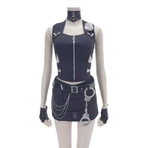 セット内容 : トップス、スカート、帽子、チョーカー、手錠、サングラス、ベルト、手錠、ショーツ、バッチ、網タイツ 11点