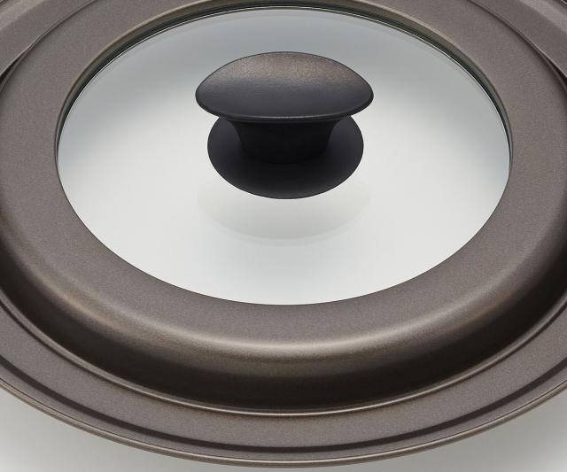 煮込み料理や蒸し料理などの際に活躍するフライパンの蓋です。ひとつで26〜30cmまでのフライパンに対応できます。3層の特殊被膜加工により、サビにくく耐久性に優れています。また、汚れがつきにくくお手入れも簡単です。