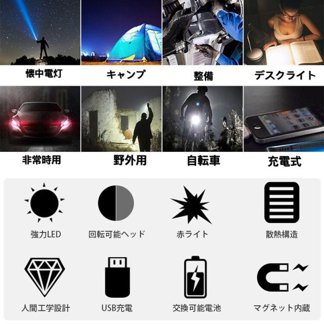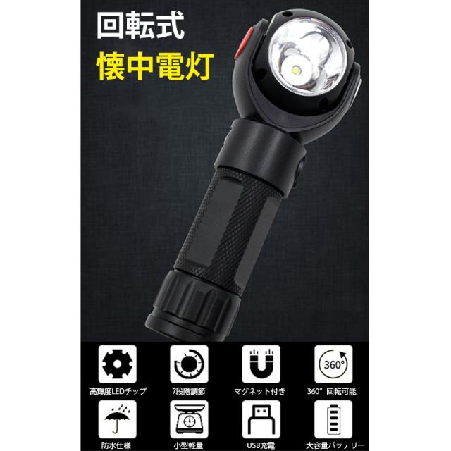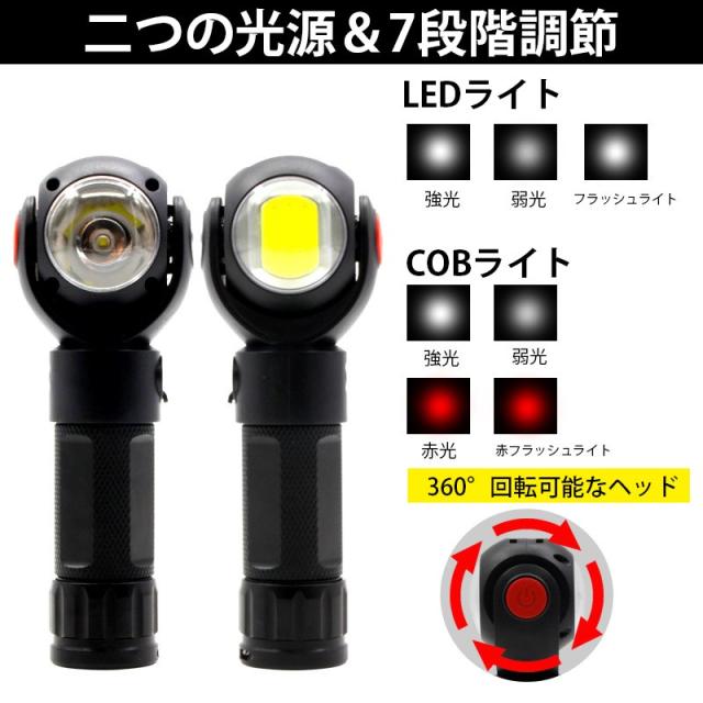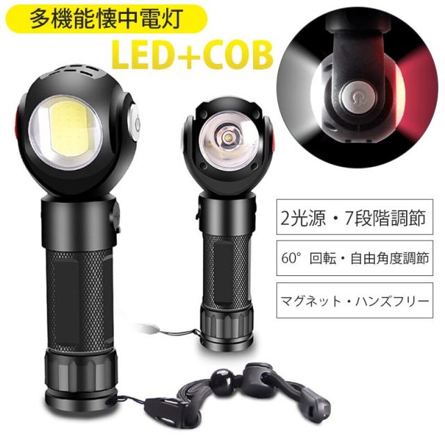 led 懐中電灯 超高輝度 防犯カメラ 型 USB充電式 ハンディライト ワークライト COB作業灯 軍用 7モード cobライト 大容量 軍用 強力 磁気