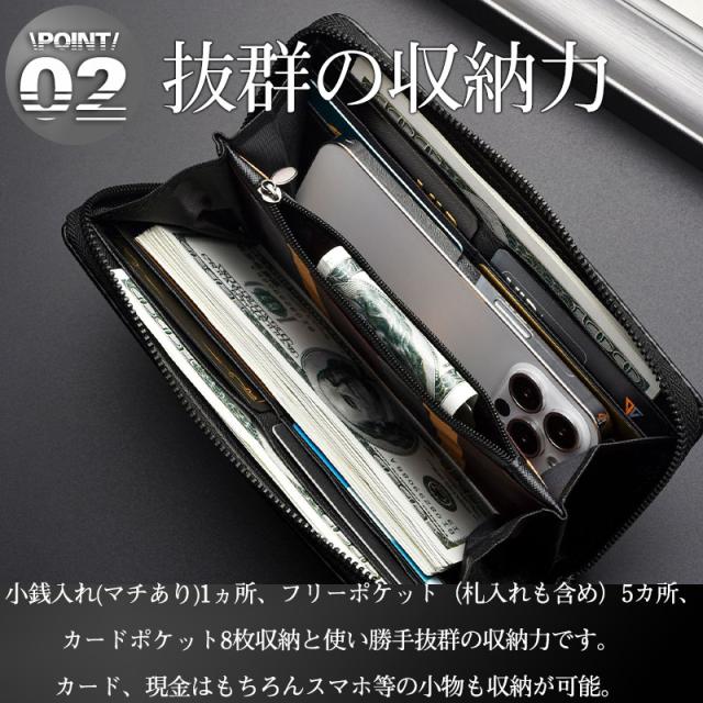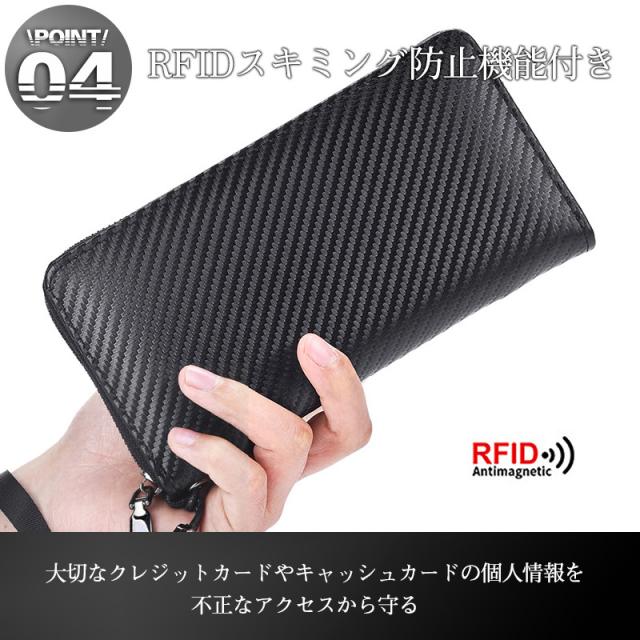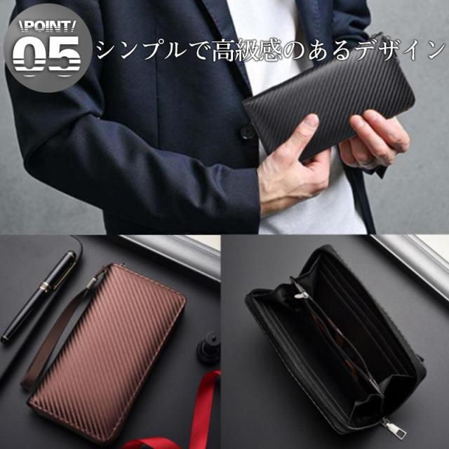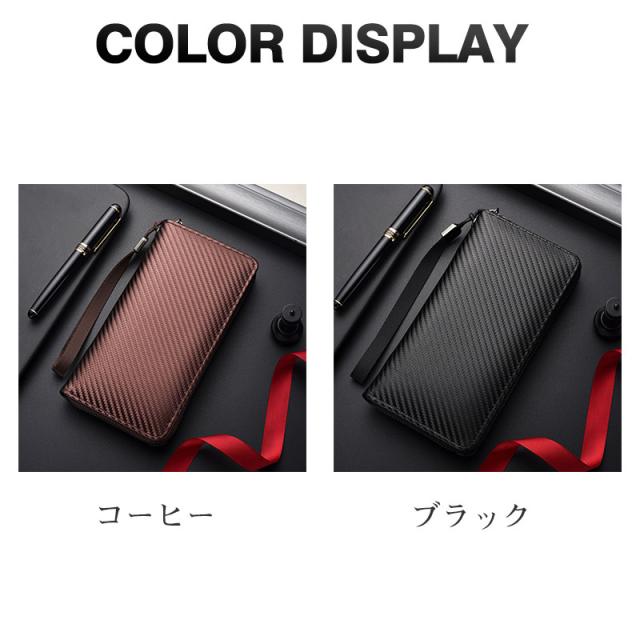 【人気小物】 財布 メンズ 長財布 ロングウォレット カーボンレザー レディース 大容量 ラウンドファスナー コインケース ビジネス 30代 4
