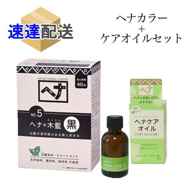 白髪染め ナイアード ヘナ+木藍 黒 (No.5) 100g ヘナケアオイル 45ml 各1個セット ヘアカラー ヘアオイル