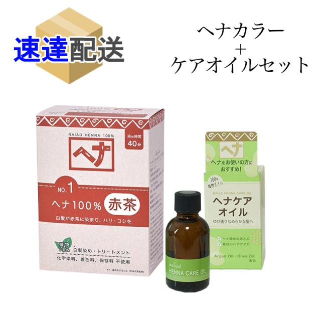 白髪染め ナイアード ヘナ100% (100g) (No.1) 赤茶 ヘナケアオイル 45ml 各1個セット ヘアカラー ヘアオイル