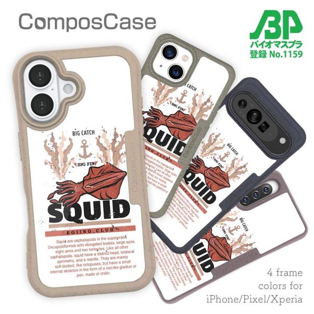 【楽天スーパーSALE 50%OFF】 コンポスケース & 着せ替え デザインシート セット iPhone16e ケース iPhone16 Pro iPhone16 iPhone15 Pro iPhone15 iPhone14 Pro iPhone14 iPhone13 釣り 魚 ルアー SQUID(イカ)