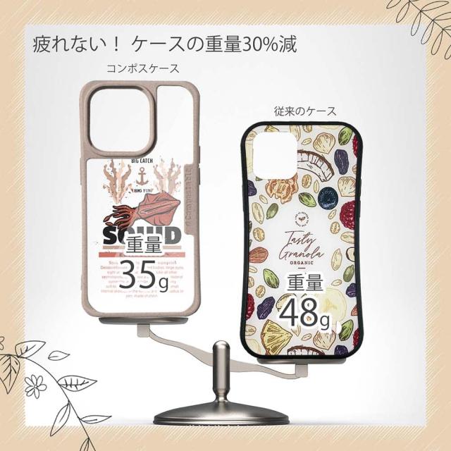 | 商品説明 | コンポスケースは、環境負荷低減を目的に開発されたスマホケース。従来のスマホケースと比べ、CO2排出量を50%削減できます。しかも、循環型社会に対応した素材を使ったケースです。 フレームカラーが4色からお選び頂けます。※コンポスケースとデザインシートが1つずつのセット商品となります。商品画像の15枚目と16枚目は、スマホの背景色によるサンプルです。ケース自体の背面は透明なので、スマホの背面色によってこのような色になるという例です。背景の色が選べる訳ではありませんので、予めご了承下さいませ。 シートのデザインは、SQUID(イカ)をビンテージ風にデザイン。 ![]() |