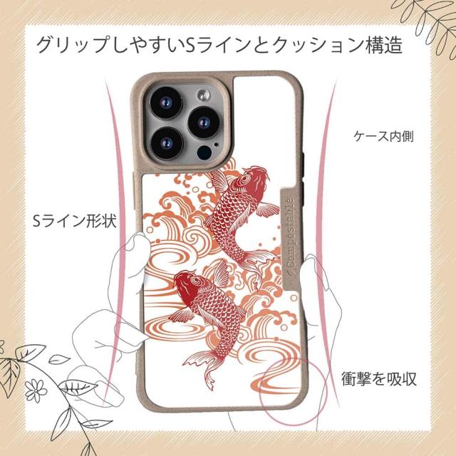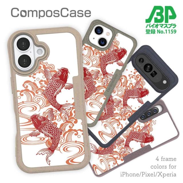 【楽天スーパーSALE 50%OFF】 コンポスケース & 着せ替え デザインシート セット iPhone16e ケース iPhone16 Pro iPhone16 iPhone15 Pro iPhone15 iPhone14 Pro iPhone14 iPhone13 ケース 釣り 魚 ルアー タトゥー風昇り鯉 レッド&ホワイト