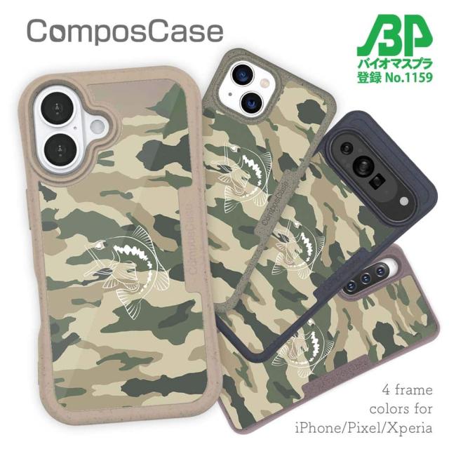 【楽天スーパーSALE 50%OFF】 コンポスケース & 着せ替え デザインシート セット iPhone16e ケース iPhone16 Pro iPhone16 iPhone15 Pro iPhone15 iPhone14 Pro iPhone14 iPhone13 ケース 釣り 魚 ルアー 迷彩&ブラックバスのイラスト パート2