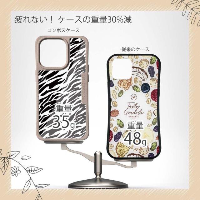 | 商品説明 | コンポスケースは、環境負荷低減を目的に開発されたスマホケース。従来のスマホケースと比べ、CO2排出量を50%削減できます。しかも、循環型社会に対応した素材を使ったケースです。 フレームカラーが4色からお選び頂けます。※コンポスケースとデザインシートが1つずつのセット商品となります。商品画像の15枚目と16枚目は、スマホの背景色によるサンプルです。ケース自体の背面は透明なので、スマホの背面色によってこのような色になるという例です。背景の色が選べる訳ではありませんので、予めご了承下さいませ。 シートのデザインは、人気のアニマル柄シマウマをプリント。 ![]() |