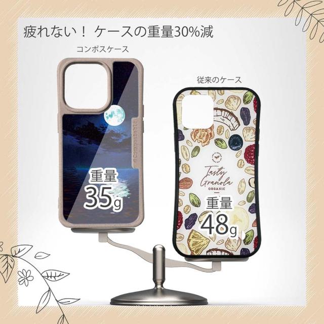 | 商品説明 | コンポスケースは、環境負荷低減を目的に開発されたスマホケース。従来のスマホケースと比べ、CO2排出量を50%削減できます。しかも、循環型社会に対応した素材を使ったケースです。 フレームカラーが4色からお選び頂けます。※コンポスケースとデザインシートが1つずつのセット商品となります。商品画像の15枚目と16枚目は、スマホの背景色によるサンプルです。ケース自体の背面は透明なので、スマホの背面色によってこのような色になるという例です。背景の色が選べる訳ではありませんので、予めご了承下さいませ。 シートのデザインは、幻想的な満月の風景。海に映る月は、常に形を変えながらも本物を追いかける。星が輝く夜空は、月の明かりに隠れないように懸命に光を放つ。 ![]() |