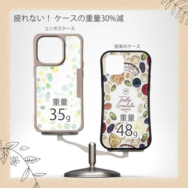 | 商品説明 | コンポスケースは、環境負荷低減を目的に開発されたスマホケース。従来のスマホケースと比べ、CO2排出量を50%削減できます。しかも、循環型社会に対応した素材を使ったケースです。 フレームカラーが4色からお選び頂けます。※コンポスケースとデザインシートが1つずつのセット商品となります。商品画像の15枚目と16枚目は、スマホの背景色によるサンプルです。ケース自体の背面は透明なので、スマホの背面色によってこのような色になるという例です。背景の色が選べる訳ではありませんので、予めご了承下さいませ。 シートのデザインは、水玉(ウォータードロップ)のグリーンバージョン! ![]() |