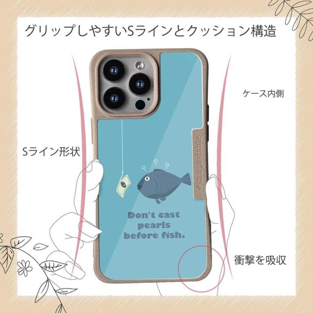 | 商品説明 | コンポスケースは、環境負荷低減を目的に開発されたスマホケース。従来のスマホケースと比べ、CO2排出量を50%削減できます。しかも、循環型社会に対応した素材を使ったケースです。 フレームカラーが4色からお選び頂けます。※コンポスケースとデザインシートが1つずつのセット商品となります。商品画像の15枚目と16枚目は、スマホの背景色によるサンプルです。ケース自体の背面は透明なので、スマホの背面色によってこのような色になるという例です。背景の色が選べる訳ではありませんので、予めご了承下さいませ。 なんとも皮肉たっぷりのイラスト。英語で「魚に真珠を与えるな」と書いてある。釣り人は魚を釣りたいがために釣具や交通費にお金をかけて釣り場へ向かう。それならいっそのこと魚にお金をあげてみれば?といった意味だろうか…。どちらが釣られているのかわからなくなる。 ![]() |