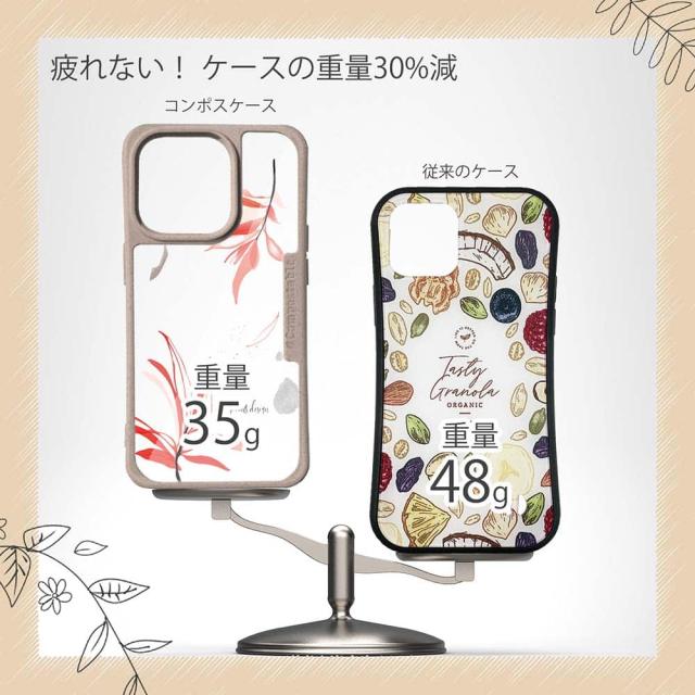 | 商品説明 | コンポスケースは、環境負荷低減を目的に開発されたスマホケース。従来のスマホケースと比べ、CO2排出量を50%削減できます。しかも、循環型社会に対応した素材を使ったケースです。 フレームカラーが4色からお選び頂けます。※コンポスケースとデザインシートが1つずつのセット商品となります。商品画像の15枚目と16枚目は、スマホの背景色によるサンプルです。ケース自体の背面は透明なので、スマホの背面色によってこのような色になるという例です。背景の色が選べる訳ではありませんので、予めご了承下さいませ。 シートのデザインは、繊細な線と淡い色合いで描かれた「プランツデザイン」。ちょっと大人な雰囲気です。 ![]() |