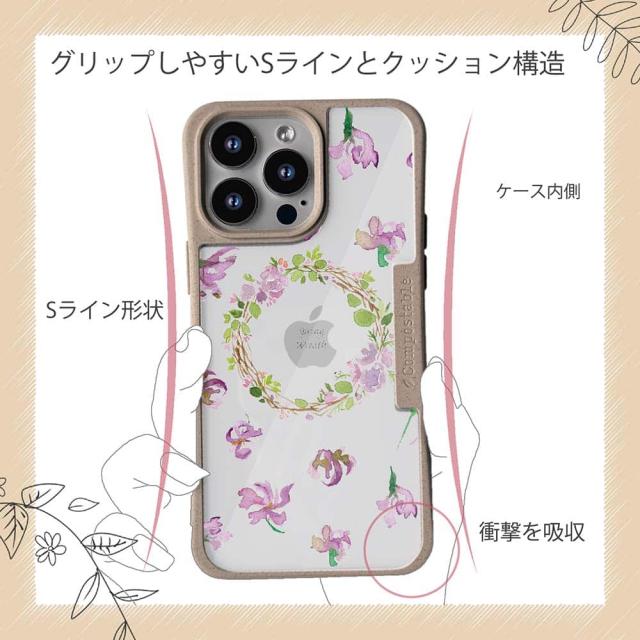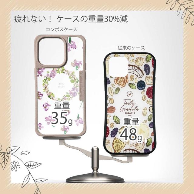 | 商品説明 | コンポスケースは、環境負荷低減を目的に開発されたスマホケース。従来のスマホケースと比べ、CO2排出量を50%削減できます。しかも、循環型社会に対応した素材を使ったケースです。 フレームカラーが4色からお選び頂けます。※コンポスケースとデザインシートが1つずつのセット商品となります。商品画像の15枚目と16枚目は、スマホの背景色によるサンプルです。ケース自体の背面は透明なので、スマホの背面色によってこのような色になるという例です。背景の色が選べる訳ではありませんので、予めご了承下さいませ。 シートのデザインは、水彩で春の天気に咲き誇る花をデザインしたもの。 ![]() |