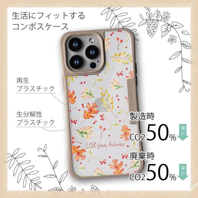 | 商品説明 | コンポスケースは、環境負荷低減を目的に開発されたスマホケース。従来のスマホケースと比べ、CO2排出量を50%削減できます。しかも、循環型社会に対応した素材を使ったケースです。 フレームカラーが4色からお選び頂けます。※コンポスケースとデザインシートが1つずつのセット商品となります。商品画像の15枚目と16枚目は、スマホの背景色によるサンプルです。ケース自体の背面は透明なので、スマホの背面色によってこのような色になるという例です。背景の色が選べる訳ではありませんので、予めご了承下さいませ。 シートのデザインは、秋になると聞きたくなる「LOVE from Autumn」。 ![]() |