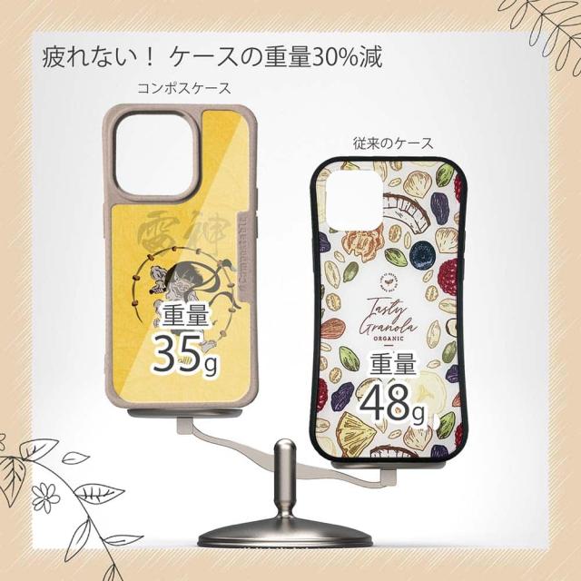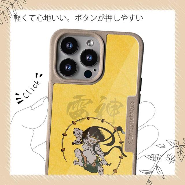 | 商品説明 | コンポスケースは、環境負荷低減を目的に開発されたスマホケース。従来のスマホケースと比べ、CO2排出量を50%削減できます。しかも、循環型社会に対応した素材を使ったケースです。 フレームカラーが4色からお選び頂けます。※コンポスケースとデザインシートが1つずつのセット商品となります。商品画像の15枚目と16枚目は、スマホの背景色によるサンプルです。ケース自体の背面は透明なので、スマホの背面色によってこのような色になるという例です。背景の色が選べる訳ではありませんので、予めご了承下さいませ。 シートのデザインは、俵屋宗達の代表作「風神雷神」で有名な雷神のイラスト。 ![]() |