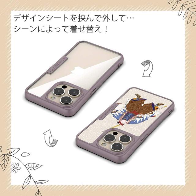 | ケースについて | 背面の内側に入れ込むデザインシートで、シーンに合わせて着せ替え可能。また、グリップしやすいクッション構造で、本体重量は約35gと軽減化を実現。さらに衝撃に強いSライン形状、究極に押しやすいボタン設計(切り込みが入ることで押し込む力を軽減)、背面のカメラ・レンズを保護する高さ設計となっております。生分解性プラスチック素材ながらも着脱もしやすく、割れない・指紋防止加工を施しています。 |