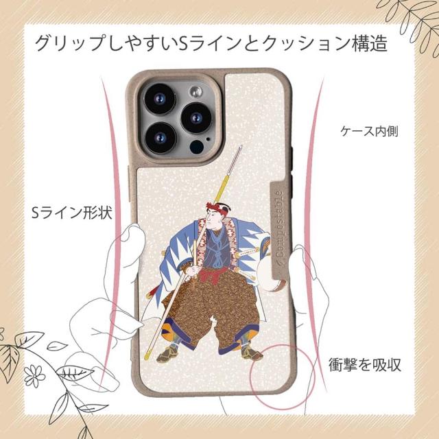 | 商品説明 | コンポスケースは、環境負荷低減を目的に開発されたスマホケース。従来のスマホケースと比べ、CO2排出量を50%削減できます。しかも、循環型社会に対応した素材を使ったケースです。 フレームカラーが4色からお選び頂けます。※コンポスケースとデザインシートが1つずつのセット商品となります。商品画像の15枚目と16枚目は、スマホの背景色によるサンプルです。ケース自体の背面は透明なので、スマホの背面色によってこのような色になるという例です。背景の色が選べる訳ではありませんので、予めご了承下さいませ。 シートのデザインは、忠臣蔵で有名な大石内蔵助の浮世絵のイラスト。太鼓手にする蔵之介、これから討ち入りするのか? ![]() |