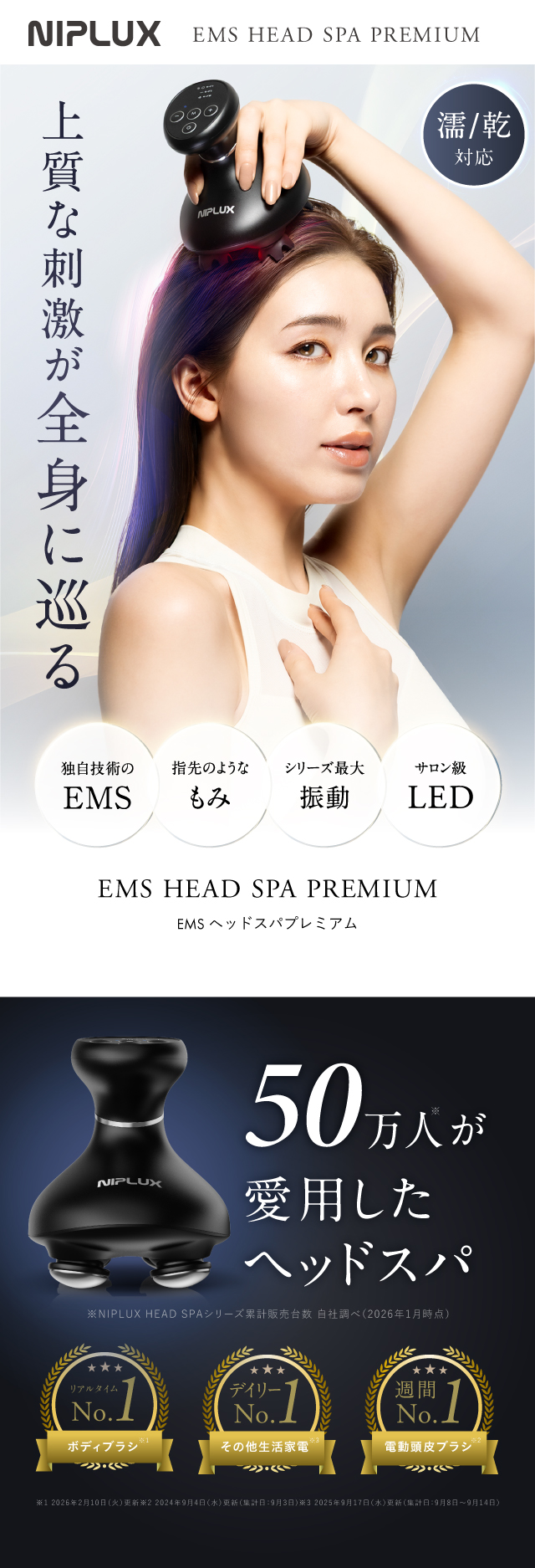 全身使える美電気ヘッドスパ EMS頭皮マッサージ ヘッドマッサージャー NIPLUX EMS HEAD SPA PREMIUM プレミアム 頭皮マッサージ器 美顔器 美容家電 光LED フェイスマッサージ 防水 実用的 ボディ クレンジング 頭皮洗浄 頭皮ケア 臭い対策 女性 男性 プレゼント ギフト