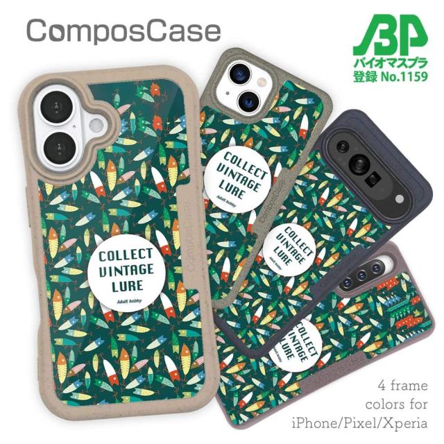 【楽天スーパーSALE 50%OFF】 コンポスケース & 着せ替え デザインシート セット iPhone16e ケース iPhone16 Pro iPhone16 iPhone15 Pro iPhone15 iPhone14 Pro iPhone14 iPhone13 釣り 魚 ルアー 大人の趣味 ブルー