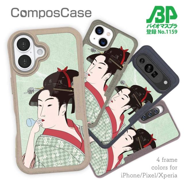 【楽天スーパーSALE 50%OFF】 コンポスケース & 着せ替え デザインシート セット iPhone16e ケース iPhone16 Pro iPhone16 iPhone15 Pro iPhone15 iPhone14 Pro iPhone14 iPhone13 浮世絵 江戸美人5