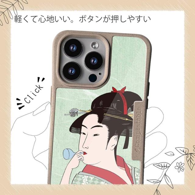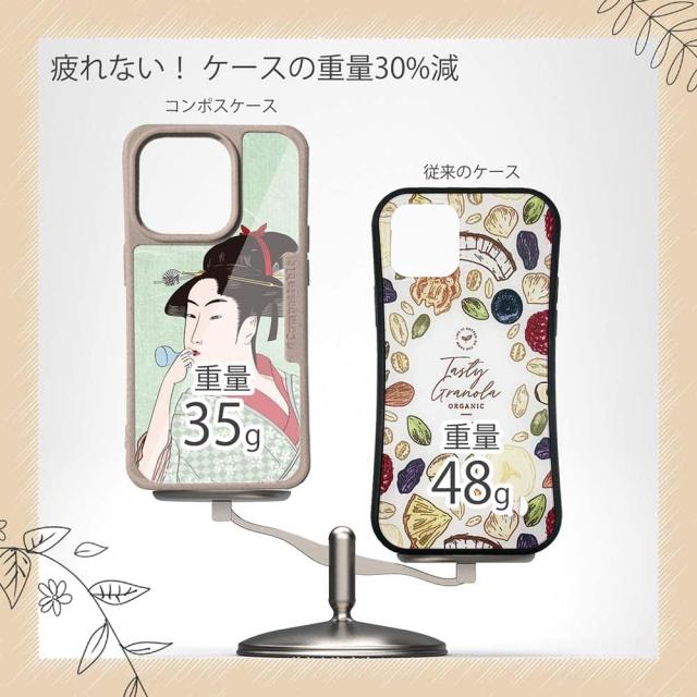 | 商品説明 | コンポスケースは、環境負荷低減を目的に開発されたスマホケース。従来のスマホケースと比べ、CO2排出量を50%削減できます。しかも、循環型社会に対応した素材を使ったケースです。 フレームカラーが4色からお選び頂けます。※コンポスケースとデザインシートが1つずつのセット商品となります。商品画像の15枚目と16枚目は、スマホの背景色によるサンプルです。ケース自体の背面は透明なので、スマホの背面色によってこのような色になるという例です。背景の色が選べる訳ではありませんので、予めご了承下さいませ。 シートのデザインは、浮世絵美人絵。日本の美しい女性のイラストが魅力的なデザイン。その5。 ![]() |
