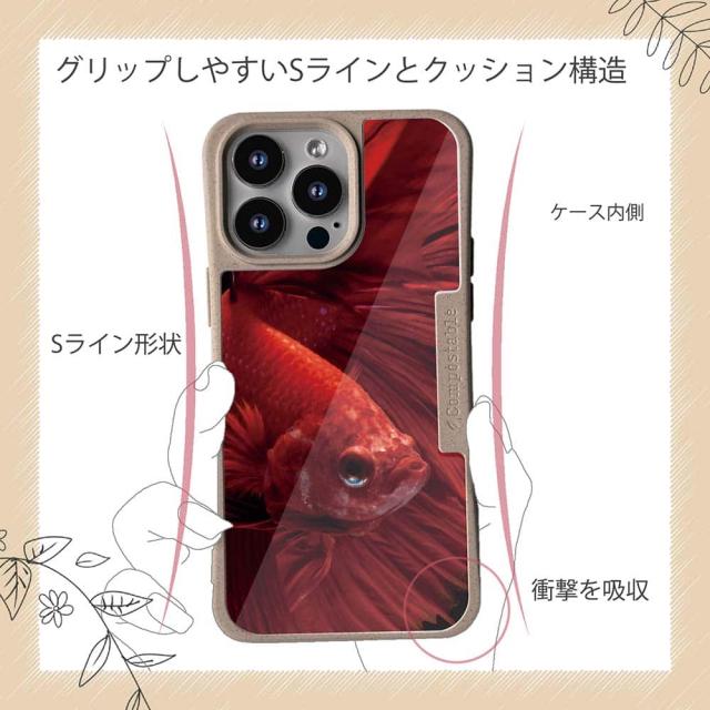 | 商品説明 | コンポスケースは、環境負荷低減を目的に開発されたスマホケース。従来のスマホケースと比べ、CO2排出量を50%削減できます。しかも、循環型社会に対応した素材を使ったケースです。 フレームカラーが4色からお選び頂けます。※コンポスケースとデザインシートが1つずつのセット商品となります。商品画像の15枚目と16枚目は、スマホの背景色によるサンプルです。ケース自体の背面は透明なので、スマホの背面色によってこのような色になるという例です。背景の色が選べる訳ではありませんので、予めご了承下さいませ。 ベタはタイのメコン川流域原産の熱帯魚(淡水魚)。闘争心の激しい魚で、品種改良を重ねるうちに、非常に美しい品種もできた。それがトラディショナル・ベタと呼ばれる。エキゾチックなベタである。 ![]() |
