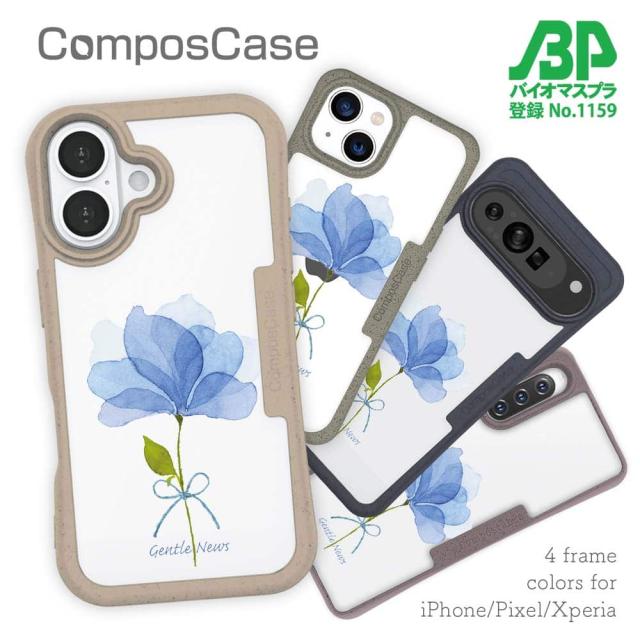 【楽天スーパーSALE 50%OFF】 コンポスケース & 着せ替え デザインシート セット iPhone16e ケース iPhone16 Pro iPhone16 iPhone15 Pro iPhone15 iPhone14 Pro iPhone14 iPhone13 青い花 嬉しいニュース
