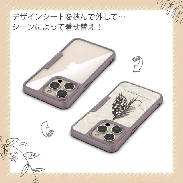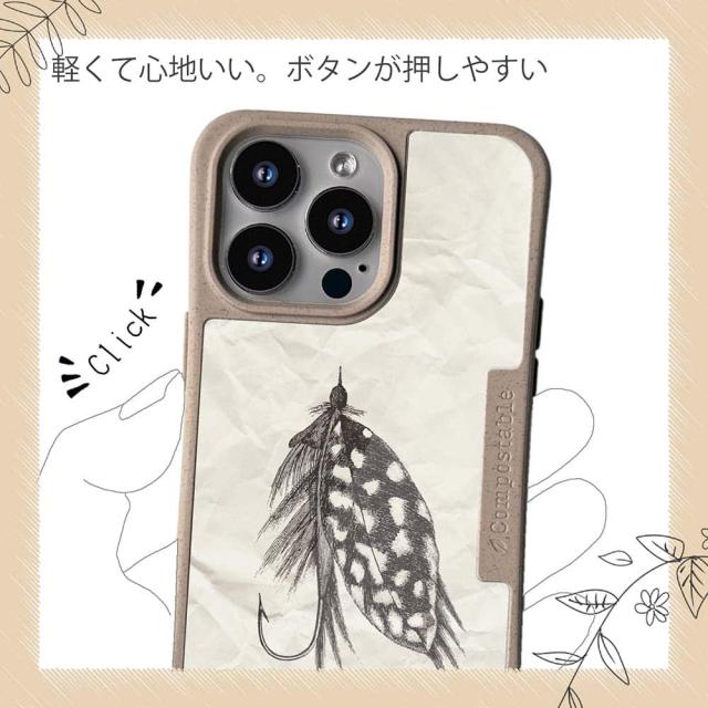 | ケースについて | 背面の内側に入れ込むデザインシートで、シーンに合わせて着せ替え可能。また、グリップしやすいクッション構造で、本体重量は約35gと軽減化を実現。さらに衝撃に強いSライン形状、究極に押しやすいボタン設計(切り込みが入ることで押し込む力を軽減)、背面のカメラ・レンズを保護する高さ設計となっております。生分解性プラスチック素材ながらも着脱もしやすく、割れない・指紋防止加工を施しています。 |